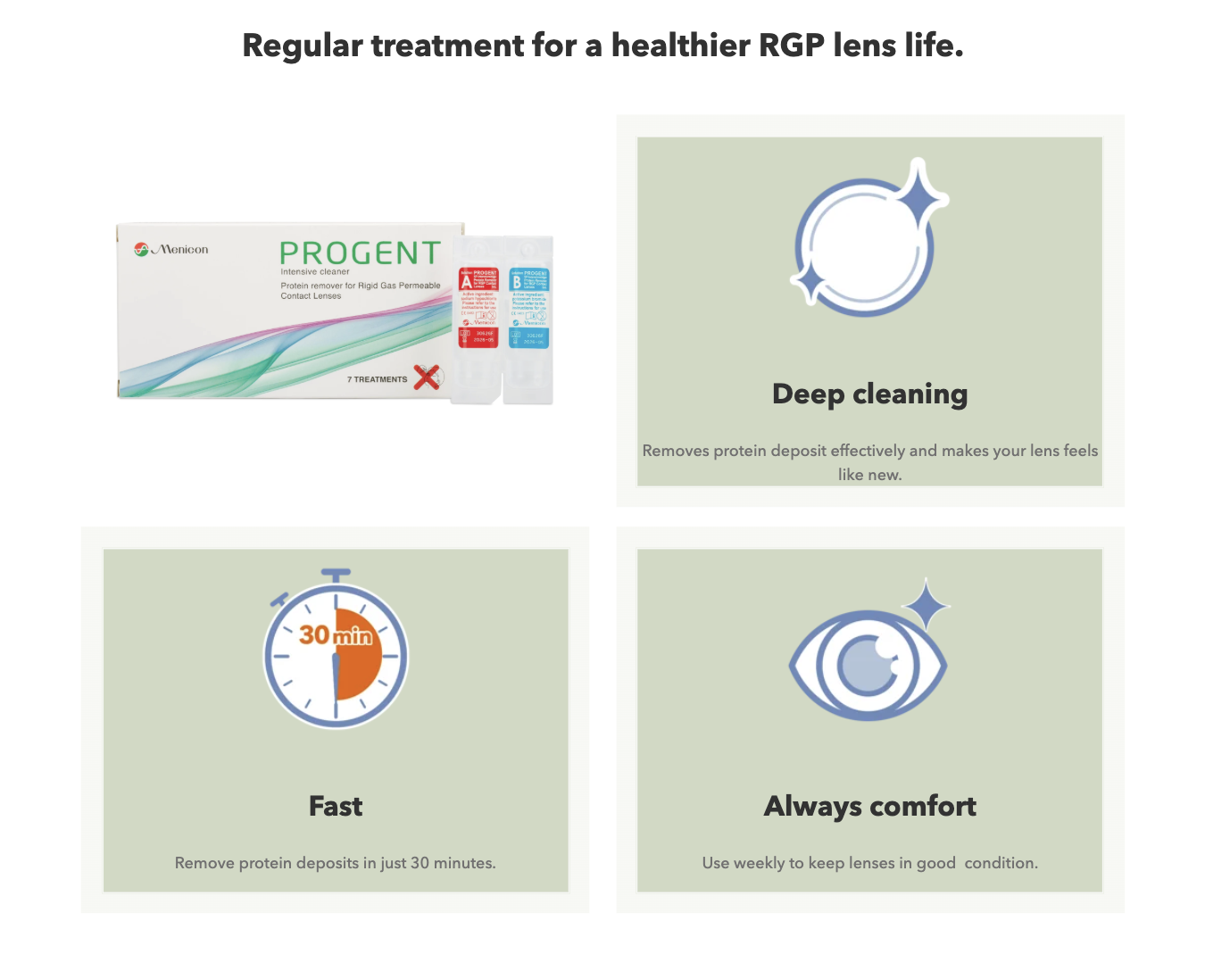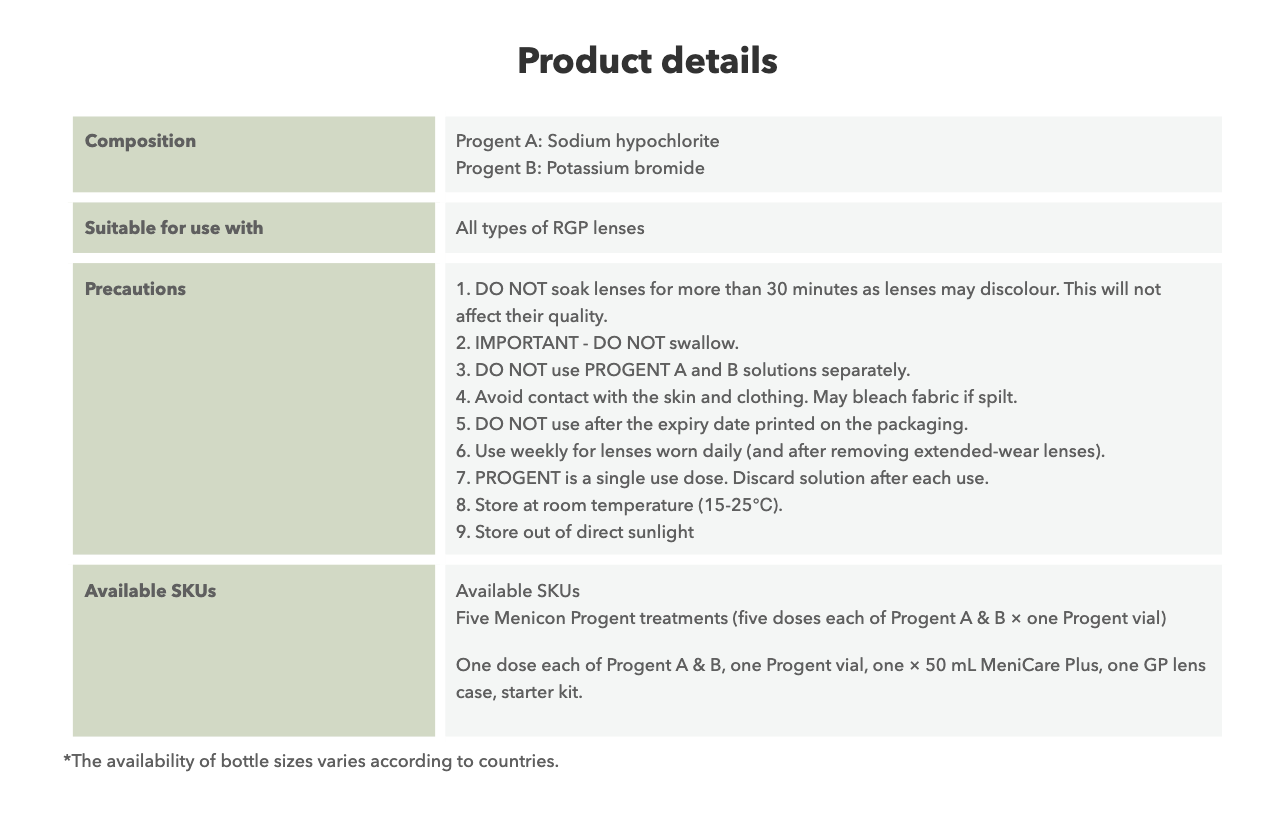 Menicon Progent is a solution for deproteinizing and intensive cleaning of RGP lenses.